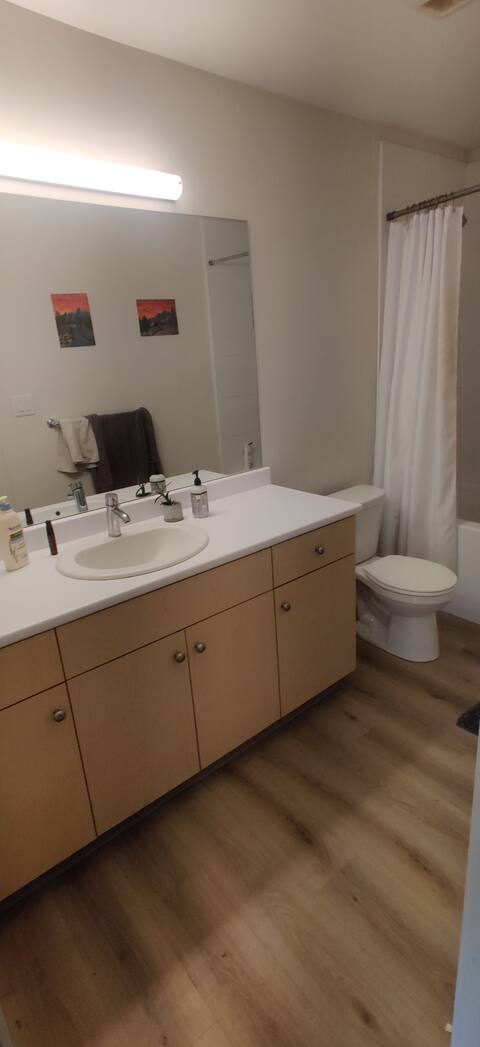 Bright room with desk in spacious apartment